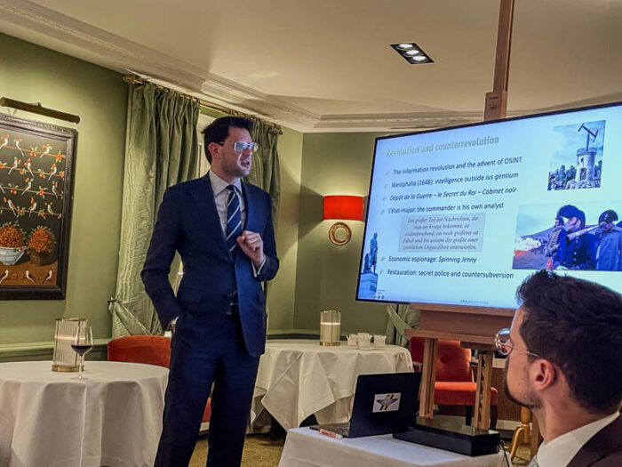 We were very pleased to have a good turnout at our Dinner-talk by Dr Kenneth Lasoen at the Cercle Münster on Tuesday 14 October. Dr Lasoen, an alumnus of Pembroke College, spoke on the fascinating and intriguing subjects of espionage, security and intelligence through the ages, from the Egyptians and Assyrians to the present day and looking forward into the future. He holds a Masters in Ancient History and a doctorate in Intelligence and Security. He is also an alumnus of the High Studies in Security and Defence at the Belgian Royal Military Academy .
