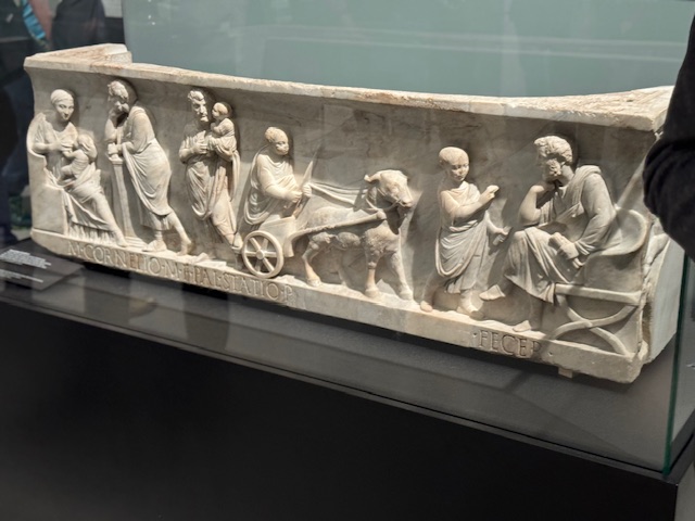Our excellent and extremely knowledgeable guide Marc, a student at Trier University provided fascinating and very clear explanations of the different stages of Marcus Aurelius’s life and career and the people around him, such as the Emperor Hadrian, his adoptive father Antoninus who followed Hadrian as Emperor, his adoptive brother Lucius Verus, with whom he ruled jointly as Emperor after the death of Antoninus until Lucius Verus’s death in 169, and his wife Faustina.