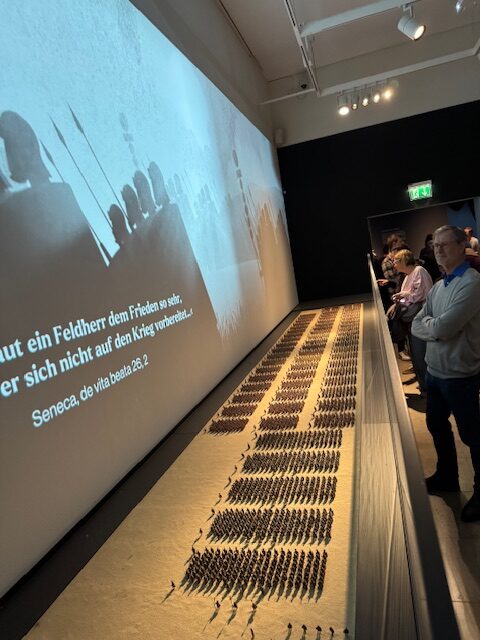 After we completed our visit at the Rheinlandisches Landesmuseum a few members of the group continued to the Stadtmuseum Simeonstift adjoining the Porta Nigra and enjoyed a self-guided tour of the “What is Good Governance?” exhibition. For centuries, Marcus Aurelius and his “Meditations” have attracted interest not only from rulers, but also from political philosophers, moral philosophers, and artists.