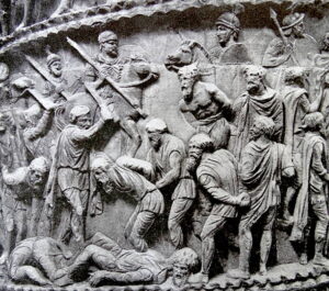 The exhibition includes a number of panels with quotations from personalities and politicians over the centuries admiring Marcus Aurelius’ “Meditations”: with the interesting comment from the historian Mary Beard “….. some of the modern admirers of the gentle philosopher-emperor Marcus Aurelius would be less admiring if they reflected on the brutality of his suppression of the Germans, proudly illustrated in the scenes of battle that circle their way up his commemorative column that still stands in the centre of Rome”! (SPQR, 2015).