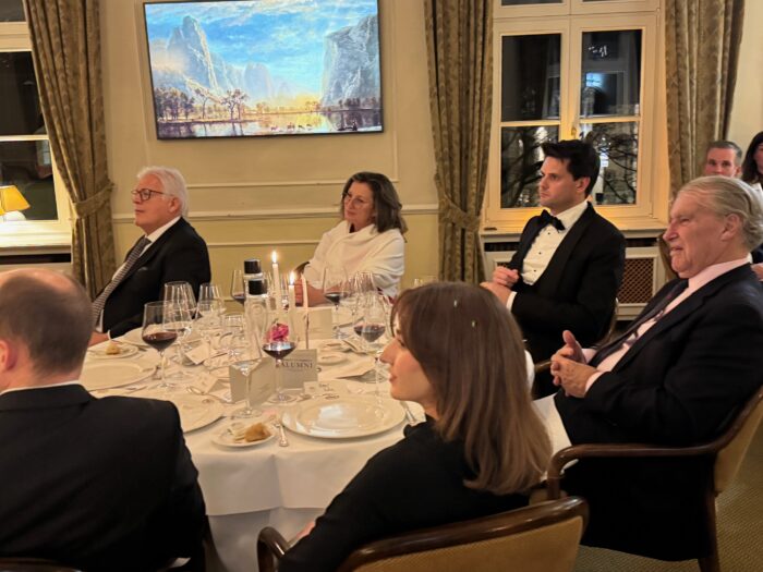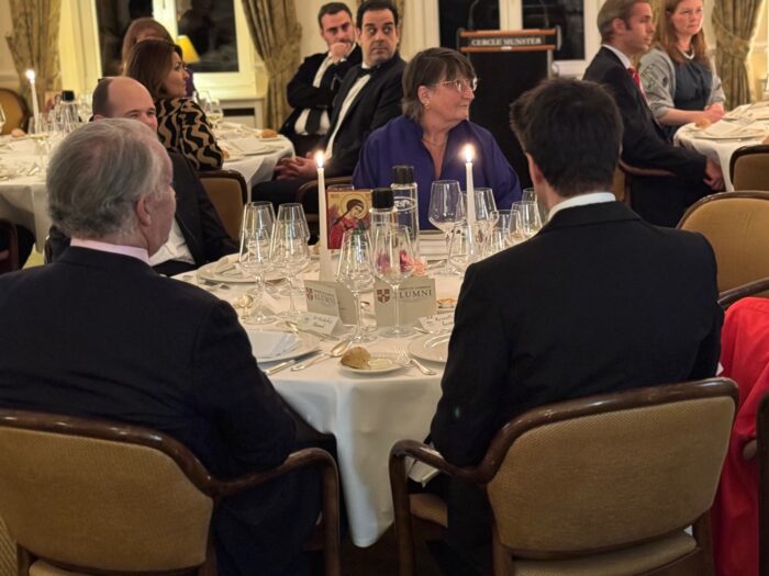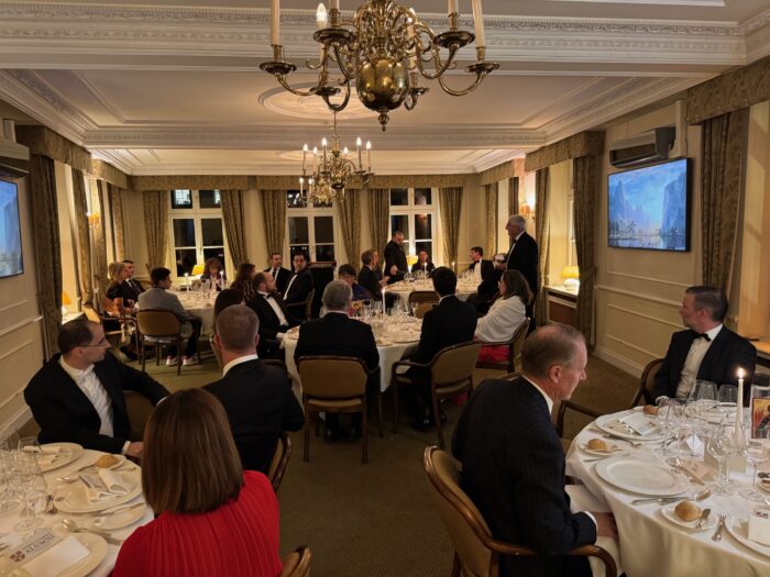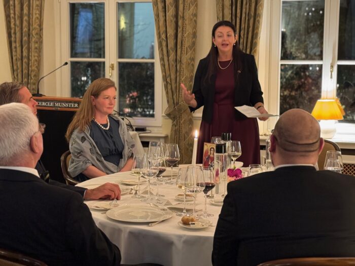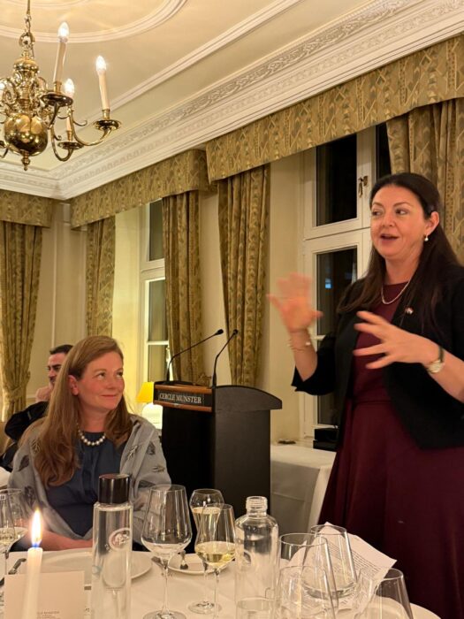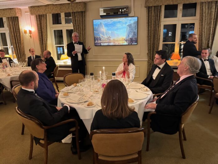 Our two Ambassadors addressed the diners during the meal. Joanne Olivier spoke briefly of her interesting career as a barrister before joining the Foreign Office in 2009 and spoke of her role since she presented her credentials to Hereditary Grand Duke Guillaume in April 2025. She also encouraged the Society to continue its work of promoting the University in Luxembourg and assisting students interested in applying to and studying at Cambridge through our participation in the Student Fairs of the Ministry of Higher Education and Research, and the programme of practice interviews that we organise together with the Oxford Society for students who have applied to our Universities. In this we are helping one of the UK’s important exports. Christina Alexopoulou thanked us for inviting her and spoke of the importance of fostering centres of academic excellence such as Cambridge.